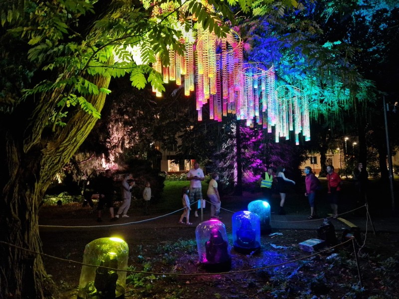 Während der Veranstaltung „Noc Kolorów” (Nacht der Farben, die meist im Juli oder August stattfindet) werden der Skwer Pionierów und der Plac 18 Marca von Hunderten von bunten Lichtinstallationen beleuchtet, und der Park verwandelt sich in einen magischen Ort mit beleuchteten Bäumen, Alleen und künstlerischen Scheinwerfern. Live-Konzerte und Lichtanimationen bereichern die Veranstaltung und schaffen eine einzigartige Atmosphäre für die ganze Familie.
